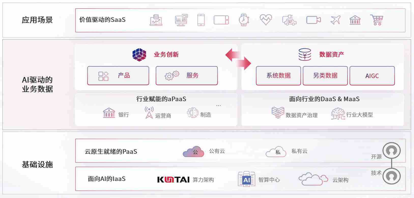 数字时代,,,,围绕企业数字化转型的关键要素,,,,福豆钱包数码开创性的提出数云融合战略和技术体系框架,,,着力在云原生、、、数字原生、、、AI原生和信创产业上架构产品和服务能力,,为处在不同数字化转型阶段的快消零售、、、汽车、、、金融、、医疗、、政企、、、教育、、、、运营商等行业客户提供泛在的敏捷IT能力和融合的数据驱动能力,,,构建跨界融合创新的数字业务场景和新业务模式,,,助力企业级客户建立面向未来的核心能力和竞争优势,,,全面推动社会的数字化、、智能化转型升级。。。。