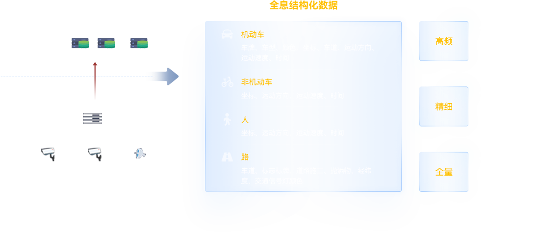 5G数字轨技术通过传感器网络与全局传感器融合产生全路端/全路网的实时交通数字孪生,,,,首先由前端感知设备采集全息道路数据,,,在边缘侧进行雷视融合计算分析生成高频、、、精细、、、、全量的结构化数据。。。。此后,,在数据处理平台进行全路段的数据融合,,,并通过算法引擎和模型加工,,生成上层业务所需要的主题数据和专题数据。。经由数据共享,,,支撑交通组织和监管执法。。。